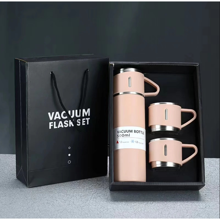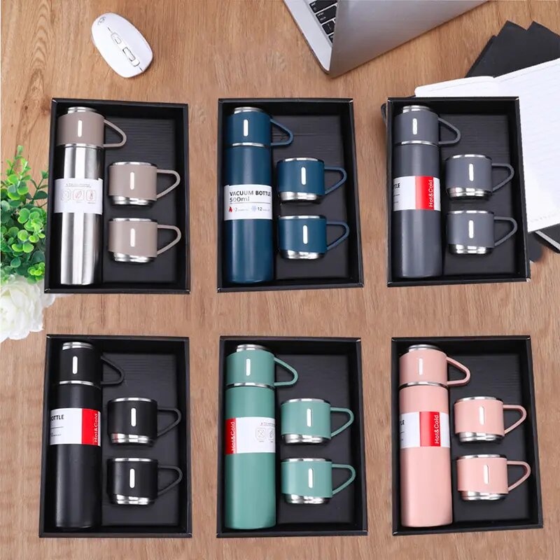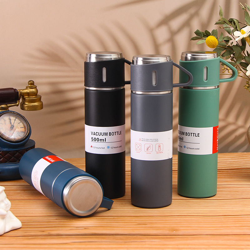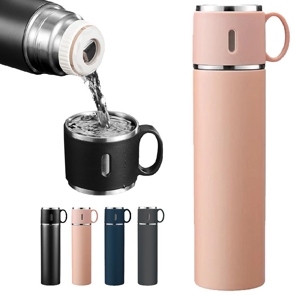 Garrafa Squeeze Fosco Térmica Aço Inox Com Copo Stainless Steel Top Garrafa Térmica Vacuum Flask Set Inox 500ml + 3 Xícaras