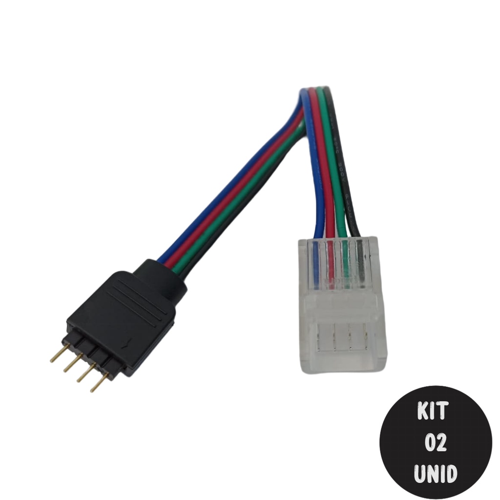 Kit 02 Conector Emenda Fita Led Rgb Com Rabicho Macho 5050 E 3528 4 Vias