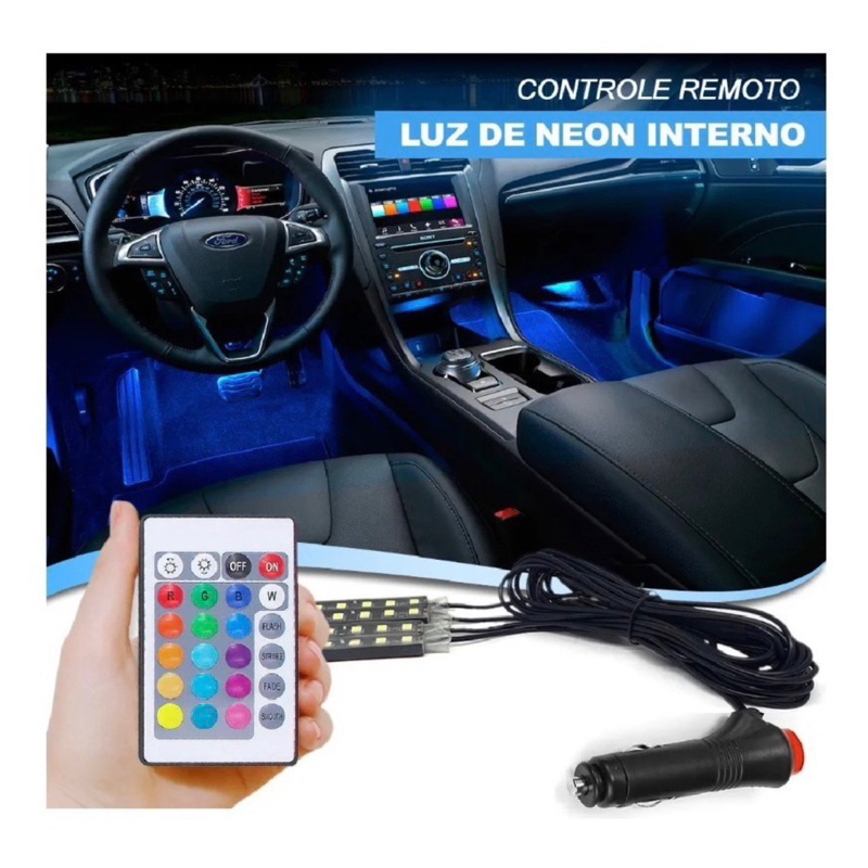 Kit 4 Fita Led para Carro RGB Luz Decorativa com Controle iluminação com Modo Música Plug 12V