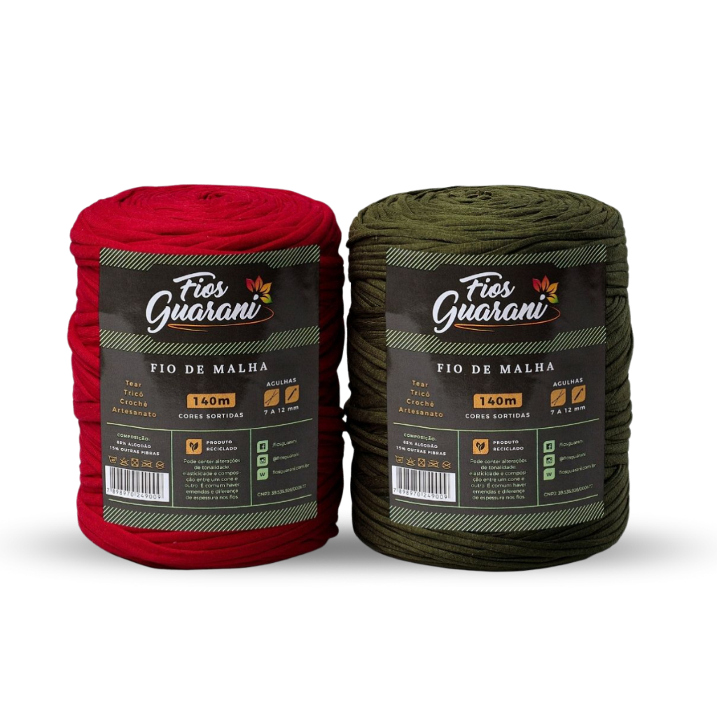 Kit Natal com 2 unidades de Fio Malha Guarani Residual de 140m - Verde Musgo e Vermelho Rubi