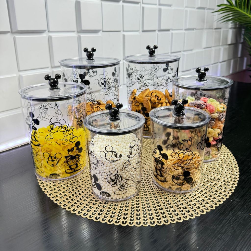 Kit de 3 Potes Herméticos Mickey Mouse com Tampa Decorativa - Potes Transparente para Armazenamento, Estampados com Mick
