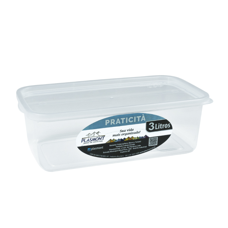 Kit 3 Potes Plásticos Quadrados Herméticos Açai 280ml, 920ml, 2,7L Flor Sanremo