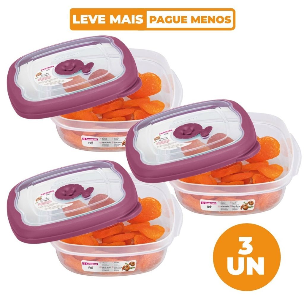 Kit 3 Potes Plásticos Quadrados Herméticos Açaí 920ml Flor Sanremo