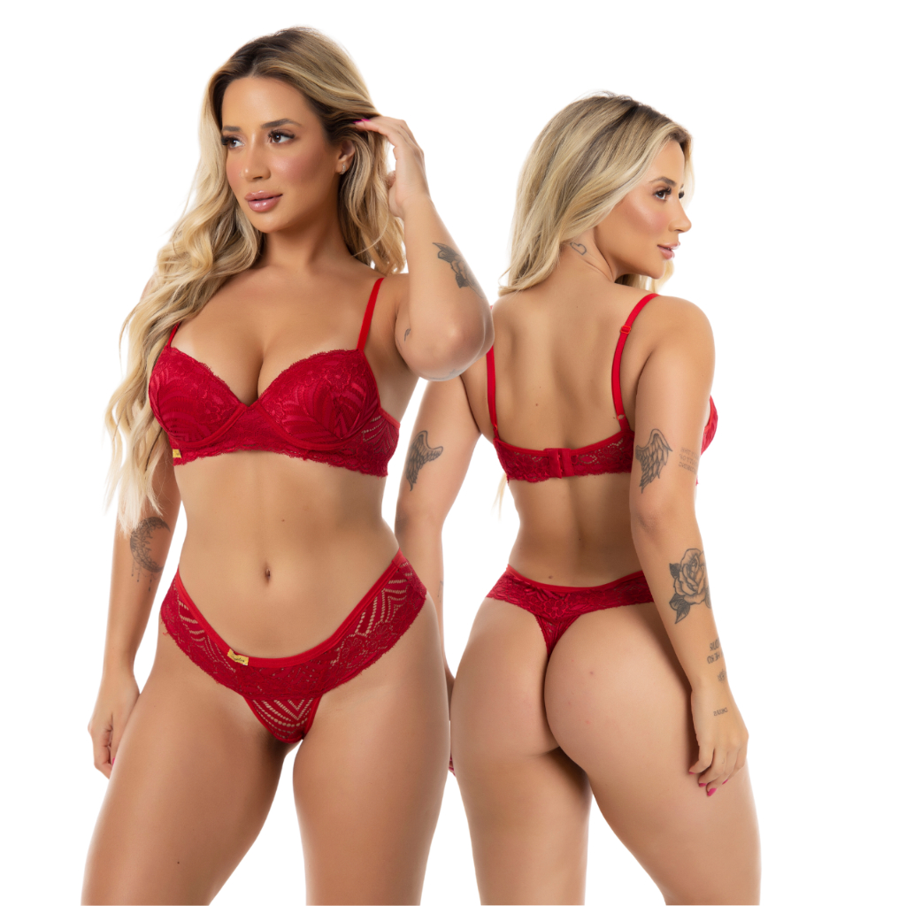 Conjunto Feminino Calcinha e Sutiã Em Renda Luxo Soutien Bojo Soft com Aro Lingerie Confortável