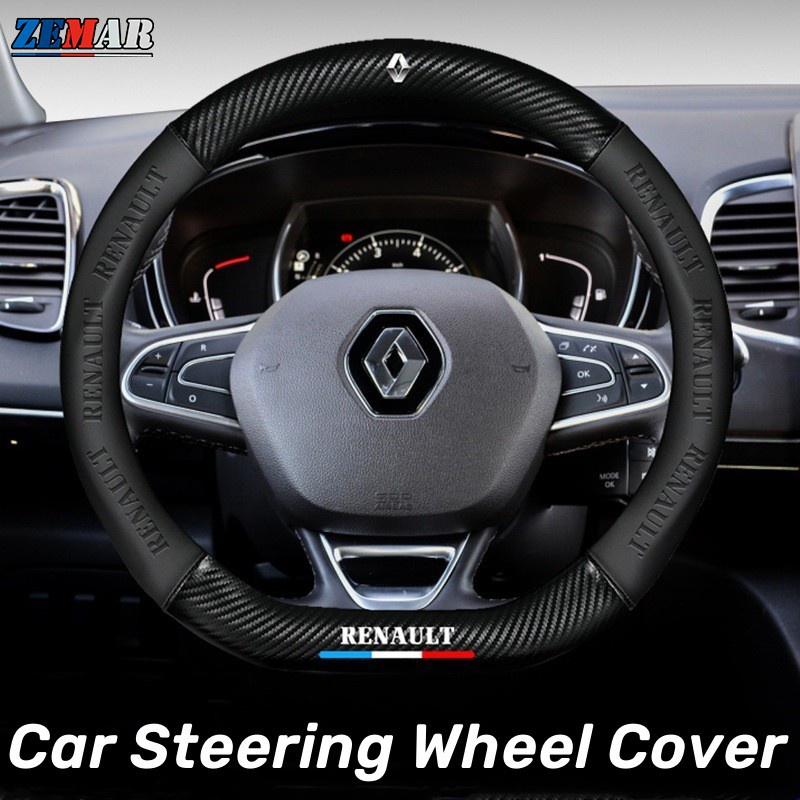 Tampa Do Volante Carro Renault De Fibra De Carbono Protetor Antiderrapante Para ZOE Clio Fluence Duster Megane 2 Sandero Kwid Logan Captur Scenic Kiger Koleos 3D Logotipo De Impressão