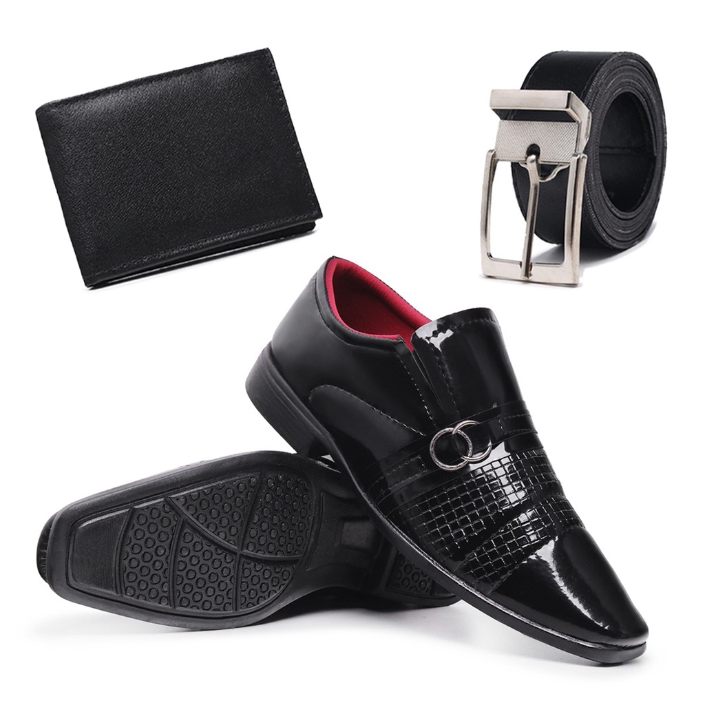 Sapato Social Masculino Couro Sintético + Cinto + Carteira Promoção Moda Evangélica