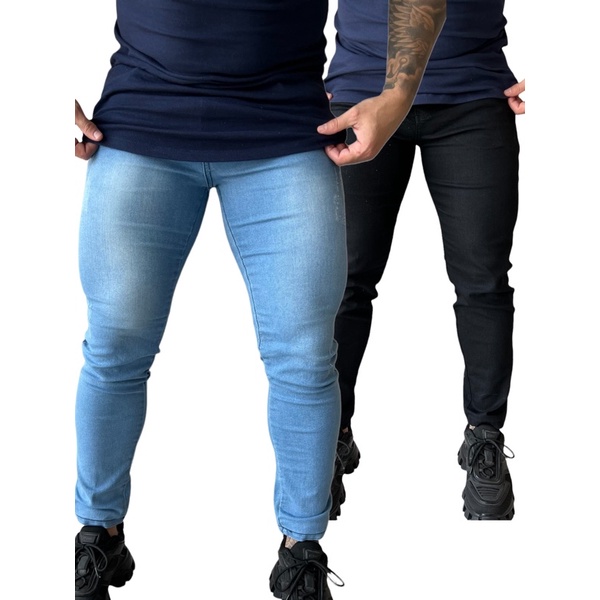 Kit 2 Calça Jeans Masculina Skinny Com Lycra Elastano Linha Premium Azul Claro e Azul Escuro