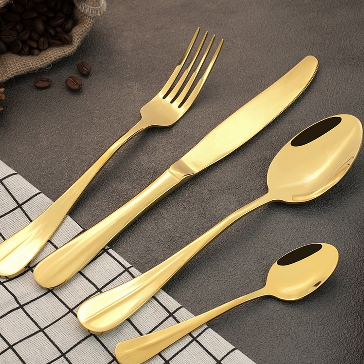 18 Peças Ouro Faca De Mesa Garfo Colher Talheres Casa Cozinha