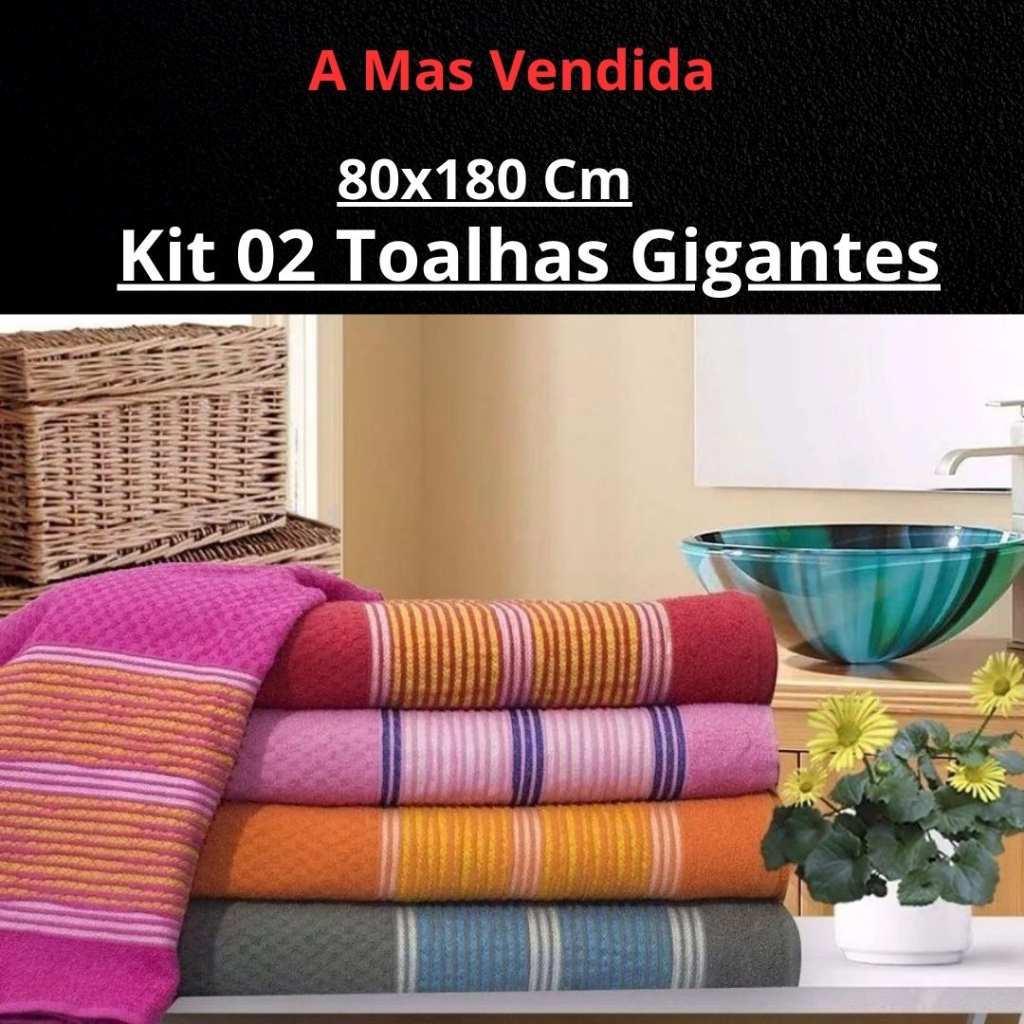 kit 02 Toalha Praia Banhao 80x180 Cm Gigante A Maior Do Brasil Grande Absorcao Grossa Banho Praia Piscina Lar Casa 100% Algodao