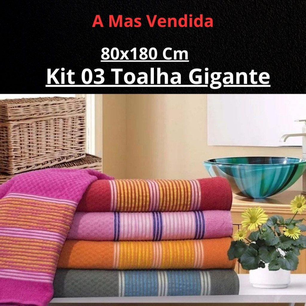 kit 03 Toalha Banhão A Maior Do Brasil 80x180 CmGigante Grande Absorção Grossa Banho Praia Piscina Lar Casa 100% Algodão