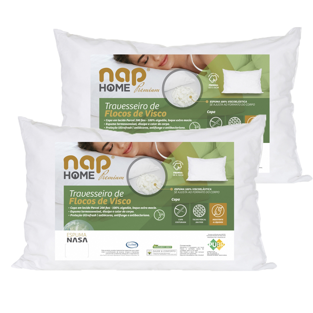 Kit 2 Travesseiro Nasa Flocos Viscoelástico Capa 200 Fios Nap