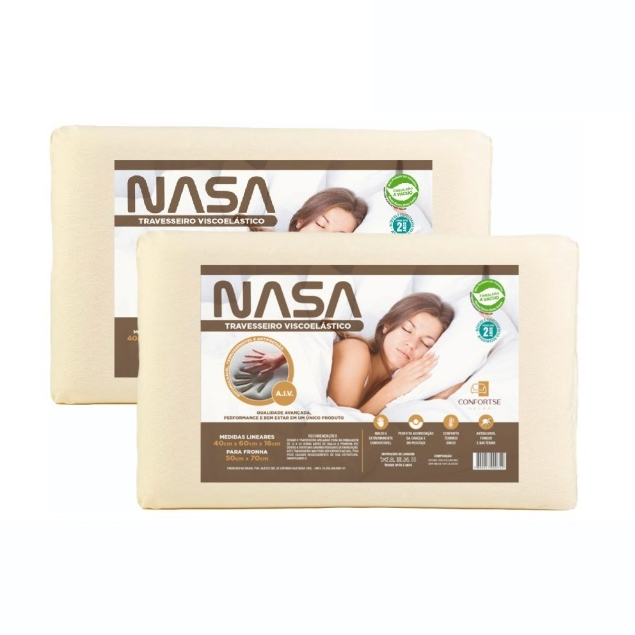 Kit Com 2 Travesseiro Nasa-X Original Viscoélastico Alto Antialérgico Antiácaro Macio
