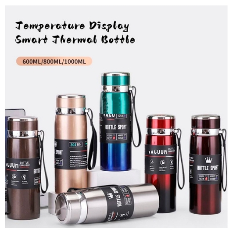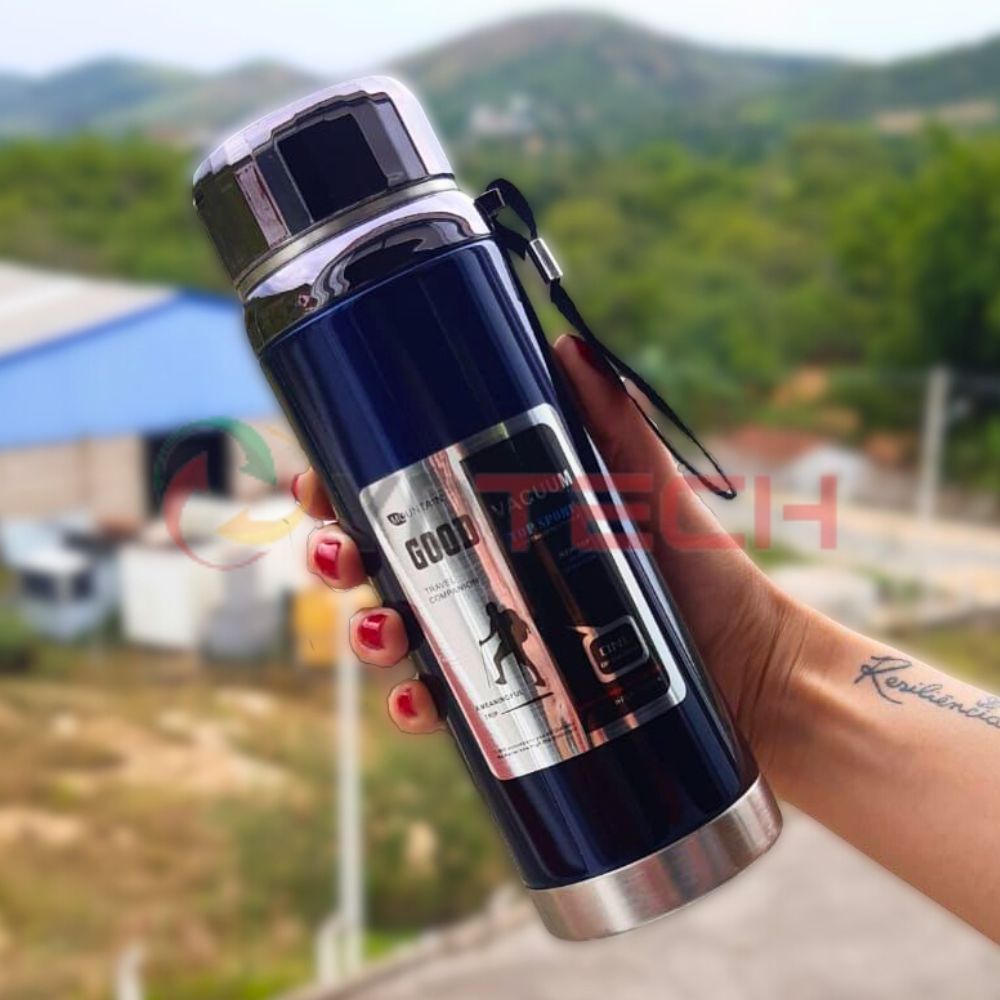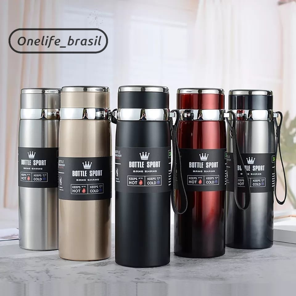 Garrafa 800ml e 1000ml Inox Térmica Com Infusor Prata Dourada De Água Café Parede Dupla Com Alça