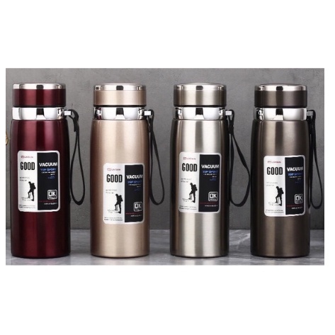 Garrafa 600ml/800ml/1000ml Inox Térmica Com Infusor Prata Dourada De Água Café Parede Dupla Com Alça-Para envio imediato