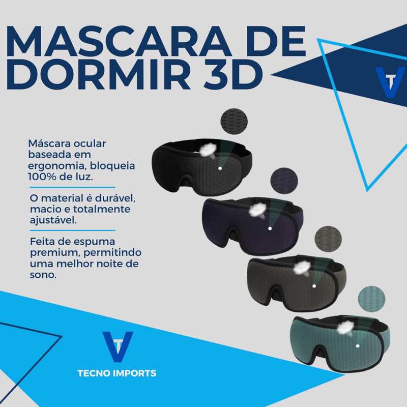 Máscara de Dormir 3D Tapa Olhos 100% Bloqueadora Luminosidade com alça ajustável Mascara de Sono
