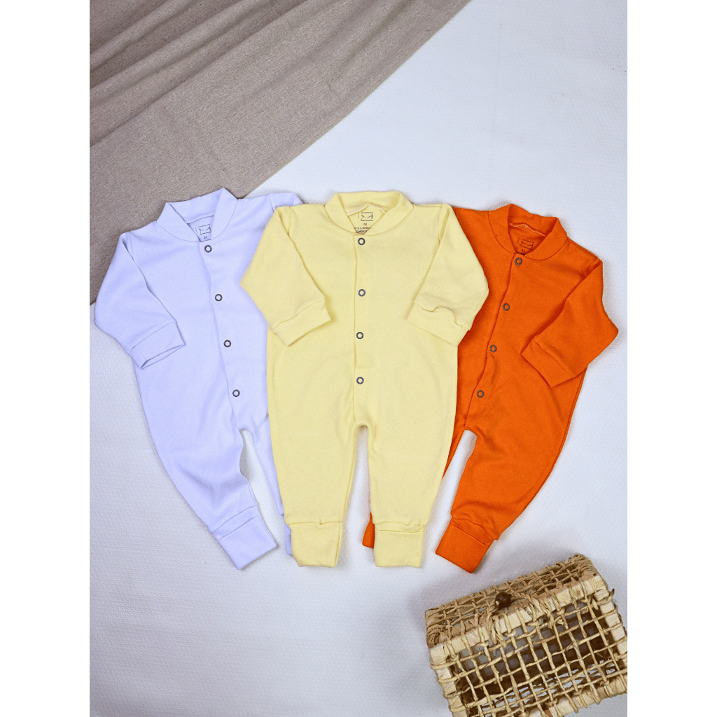 Kit 3 Macacão de Bebê Cor Minimalista Suedine Vira Pé - (P/M/G)