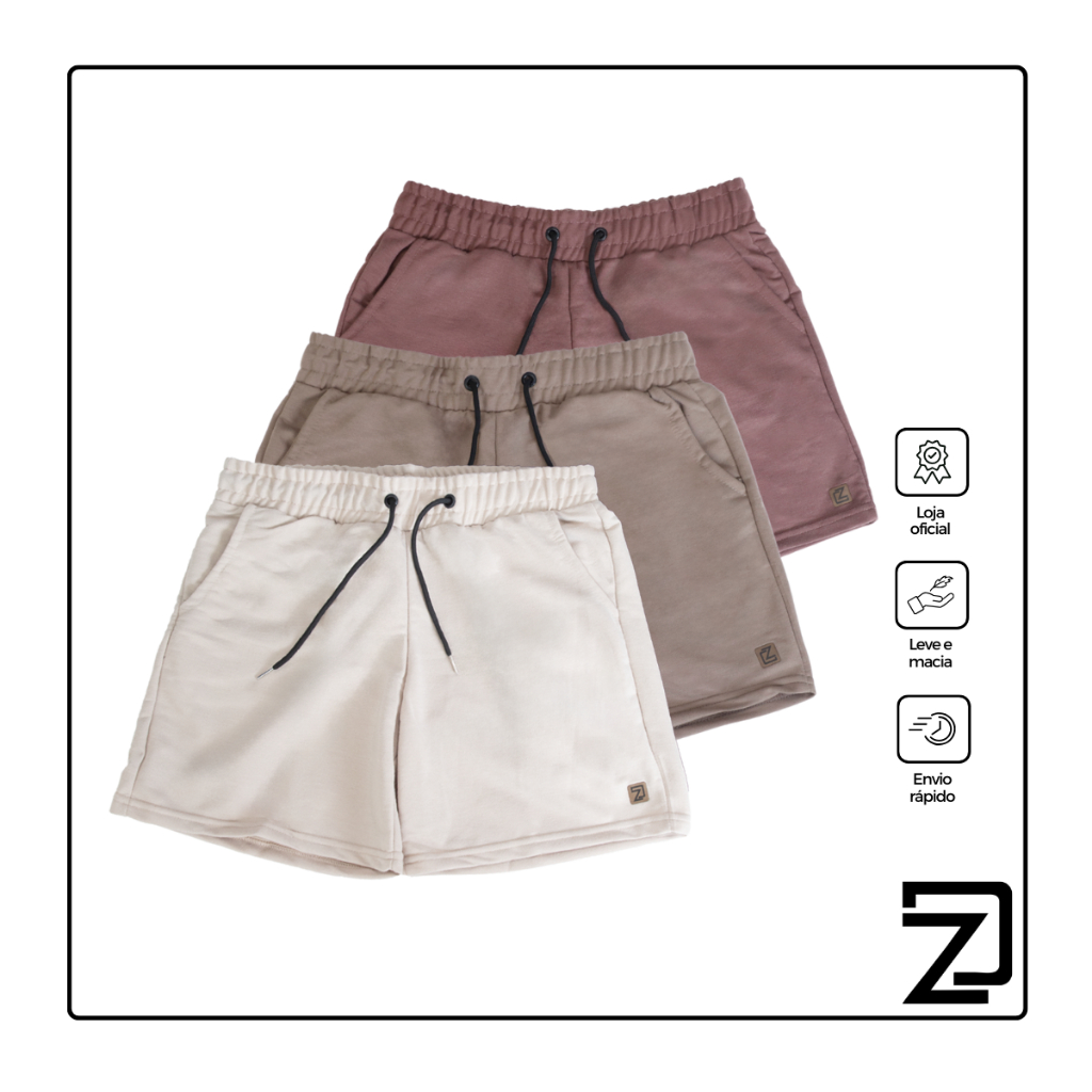 KIT 3 Bermuda Short Masculina Moletinho Casual Adulto