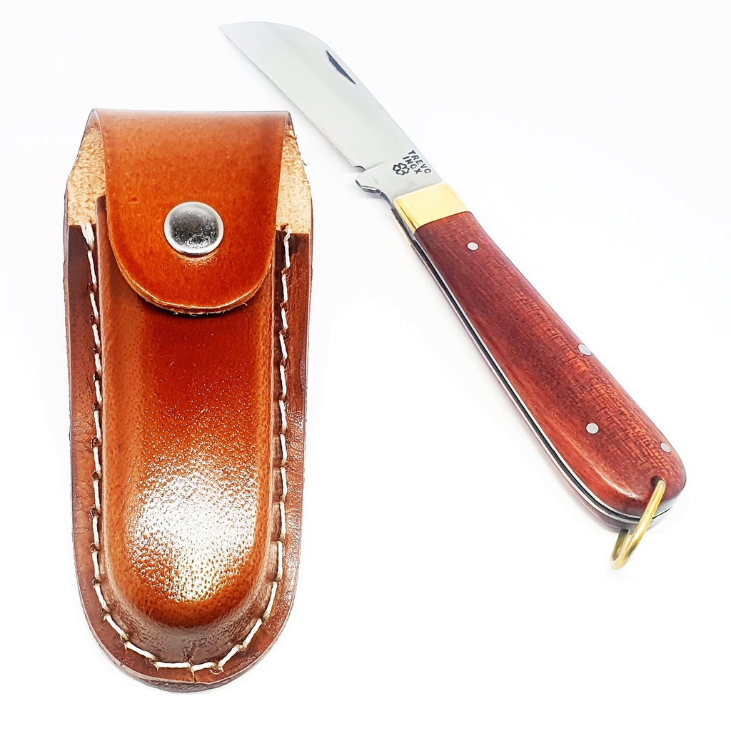 Canivete Trevo Multiuso Aço Inox e Cabo de Madeira + Bainha em Couro