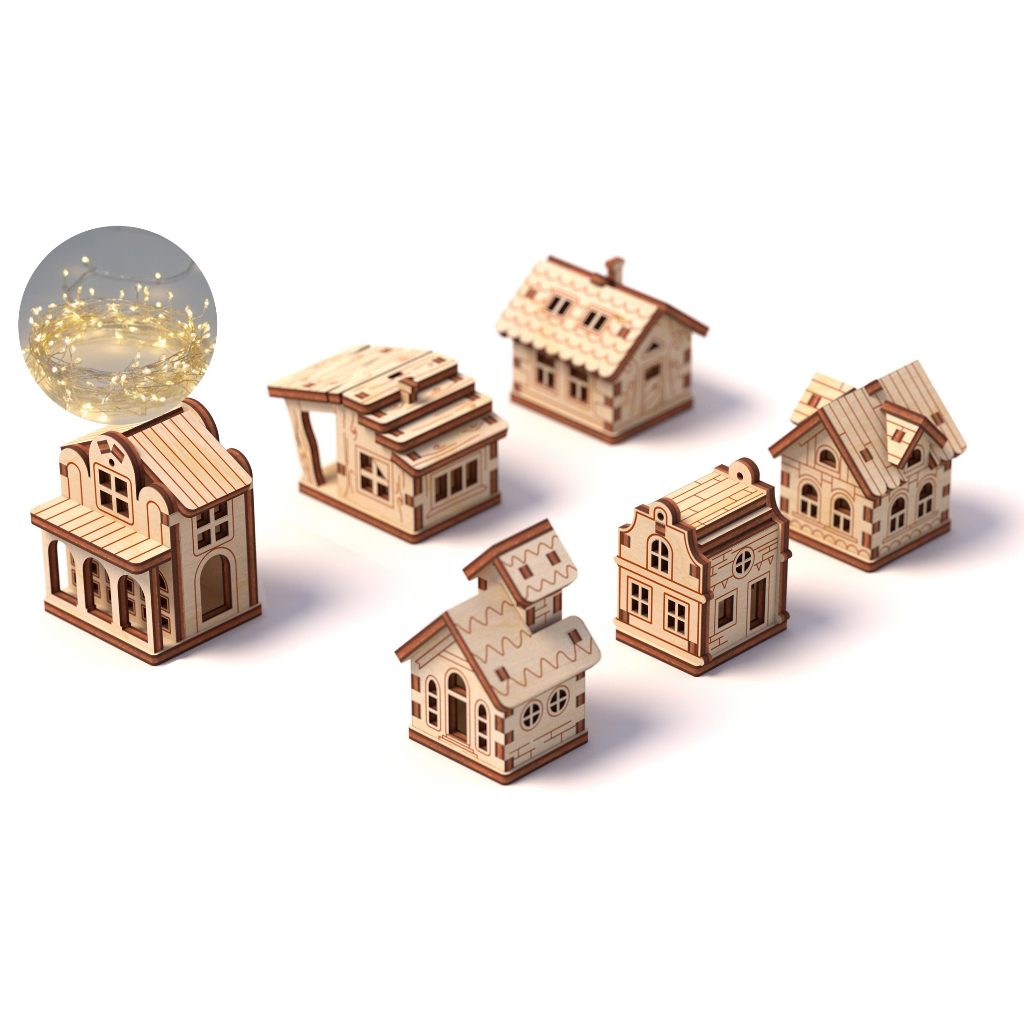 Mini Casinha Decoração Natal Mdf 20 Peças