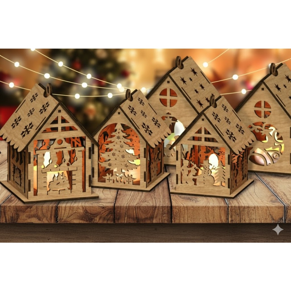 Casinha de Natal em MDF com Corte a Laser – Decoração Natalina Artesanal