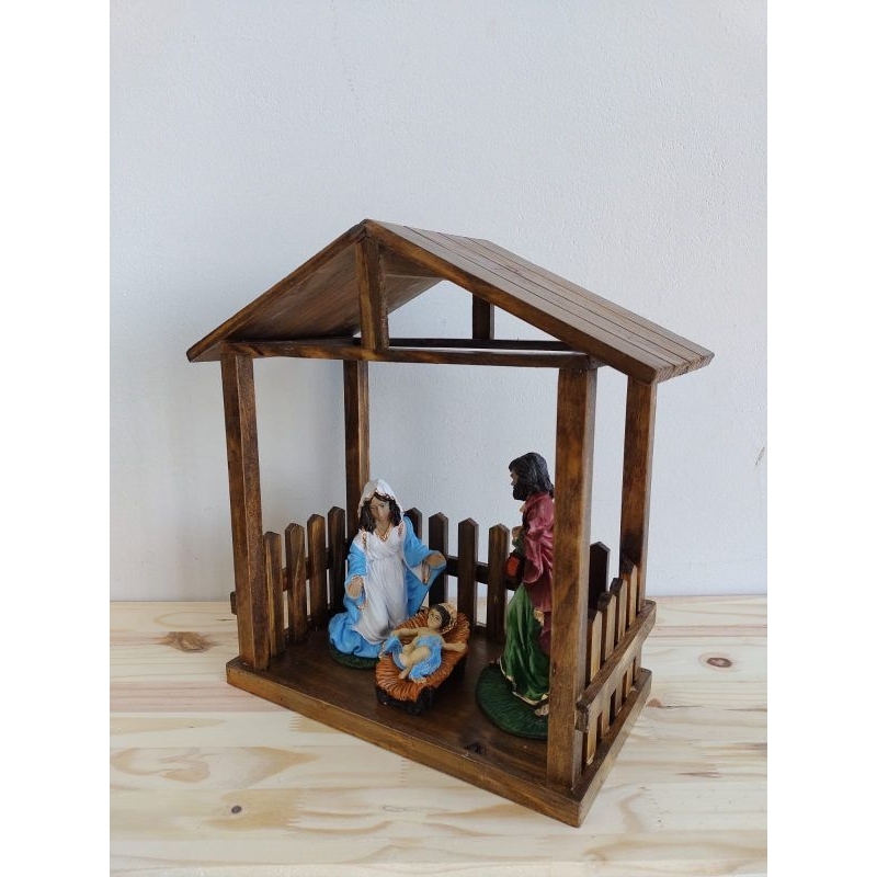 Casinha Para Presépio Madeira Rústica Madeira Manjedoura Decoração