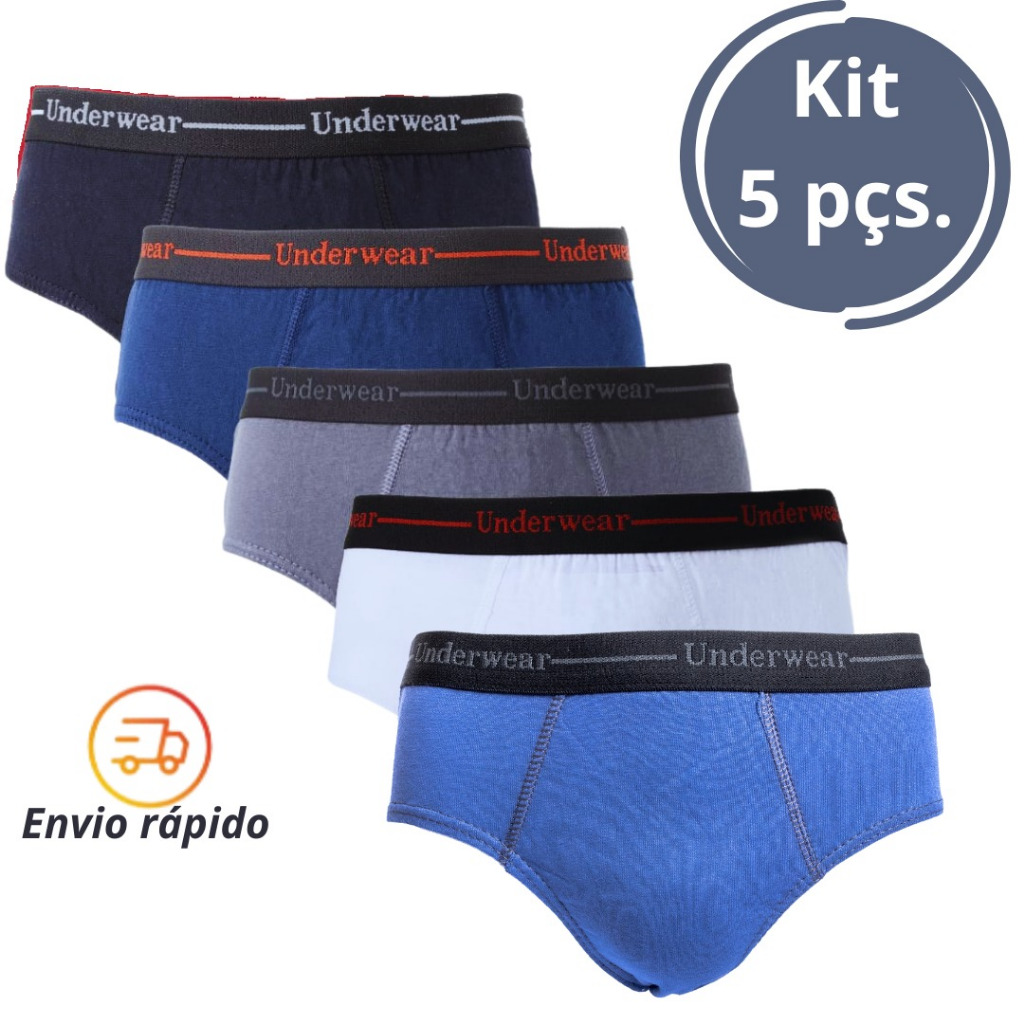 kit 5 Cuecas Slip tradicional Com Elástico Aparente de Adulto em Algodão