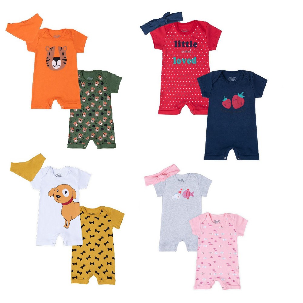 Kit Macacão Bebê 3 Peças Curto Verão Roupa Recém-nascido Suedine Menino Menina Infantil Tamanho P ao GG