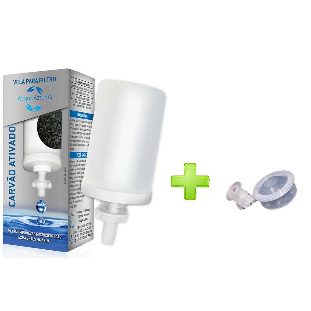 Kit Com 1 Vela Carvão Ativado Acquaazzurra + 1 Boia Dosadora Para Filtro De Barro