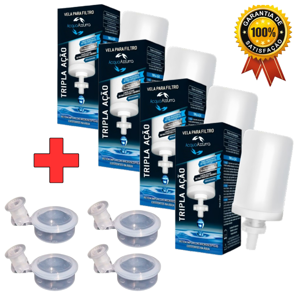 Kit 4 Velas Para Filtro De Barro Por Gravidade Tripla Ação + 4 Boia Dosadora