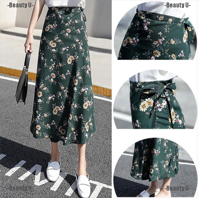 Beleza U ❤ Saia Feminina Verão Casual Boho Praia Chiffon Cintura Alta Longo Floral Envoltório Saia