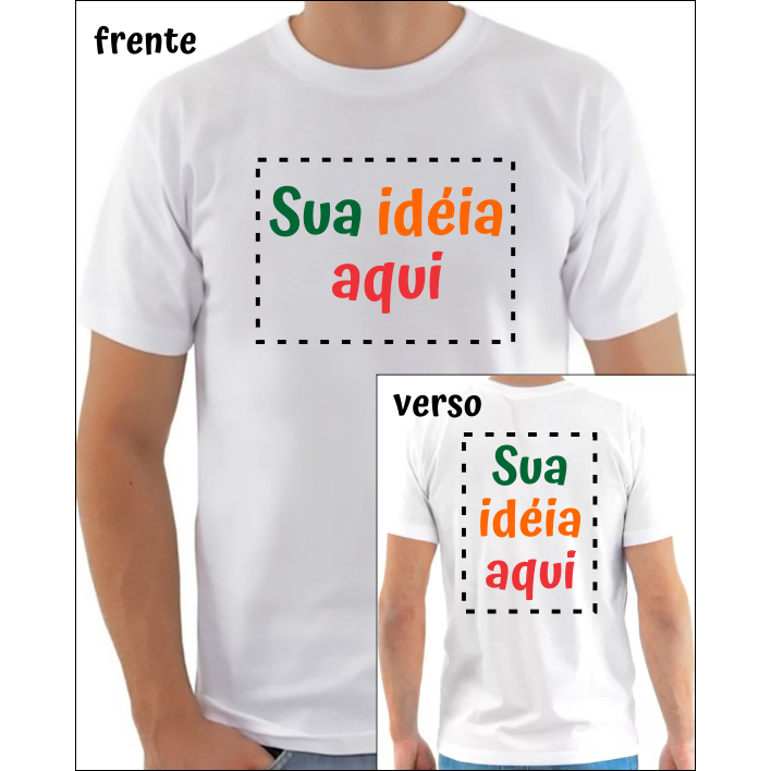Camisa Camiseta Unissex Branca Personalizada Adulto e Infantil com sua Estampa, Foto, Frase, Logomarca