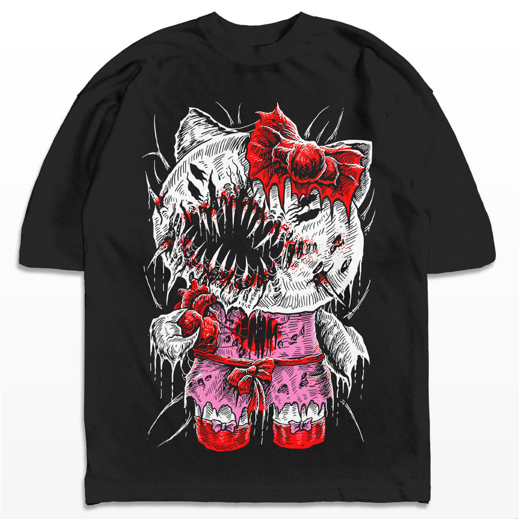 Camiseta Oversized Hello Kitty Assassina Gótica Punk Streetwear Camisa Unissex