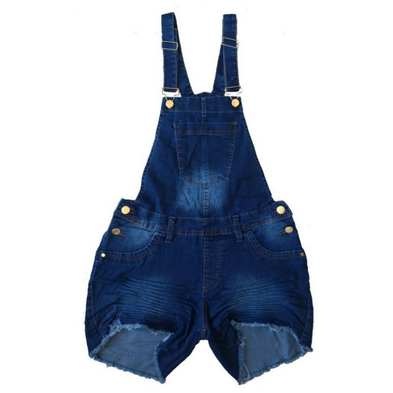 Jardineira Short Macaquinho Jeans Plus Size Feminina Lycra