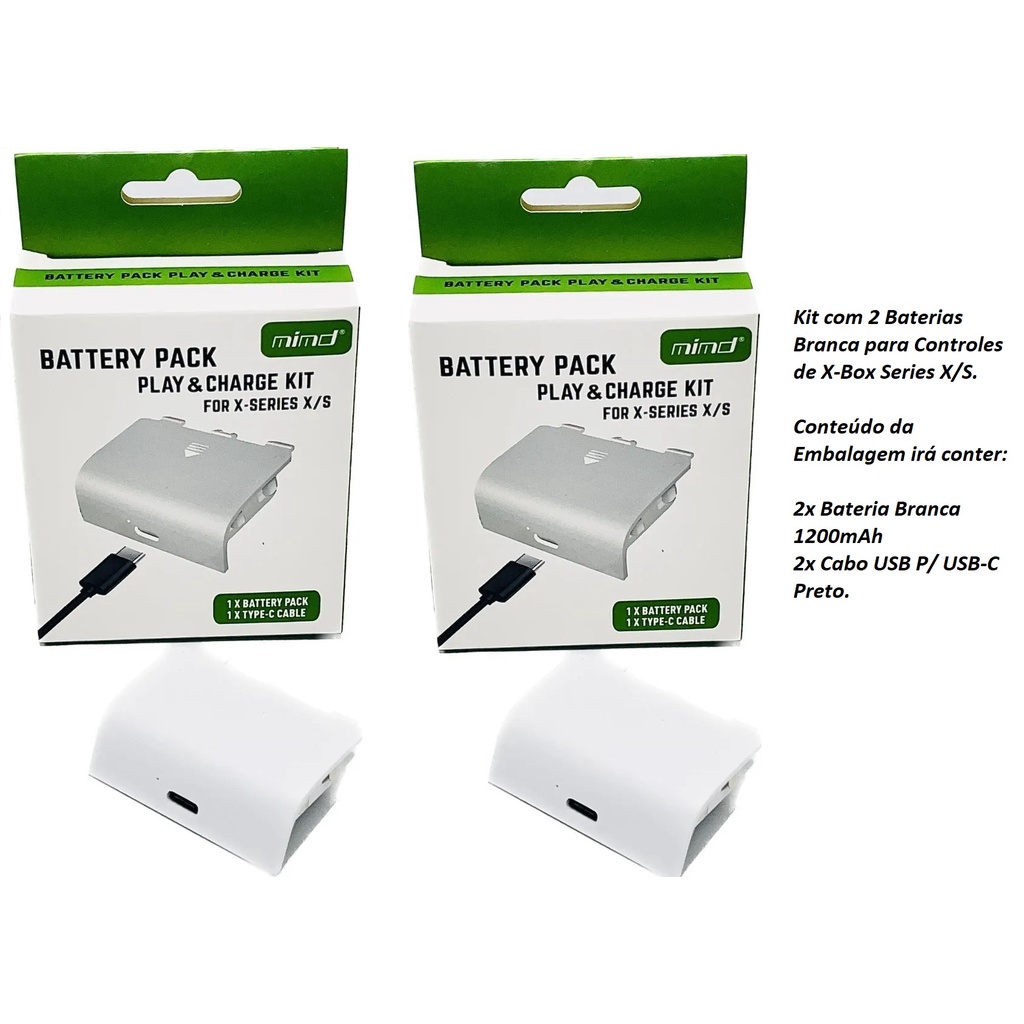 Kit 2 Bateria Branca com Cabo Carregador TIPO-C Para X-Box Series X/S