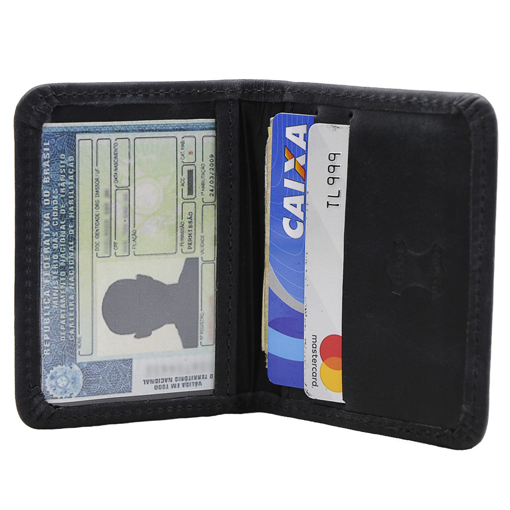 Carteira Masculina Slim Em Couro Legítimo Cnh Porta Cartões Preto