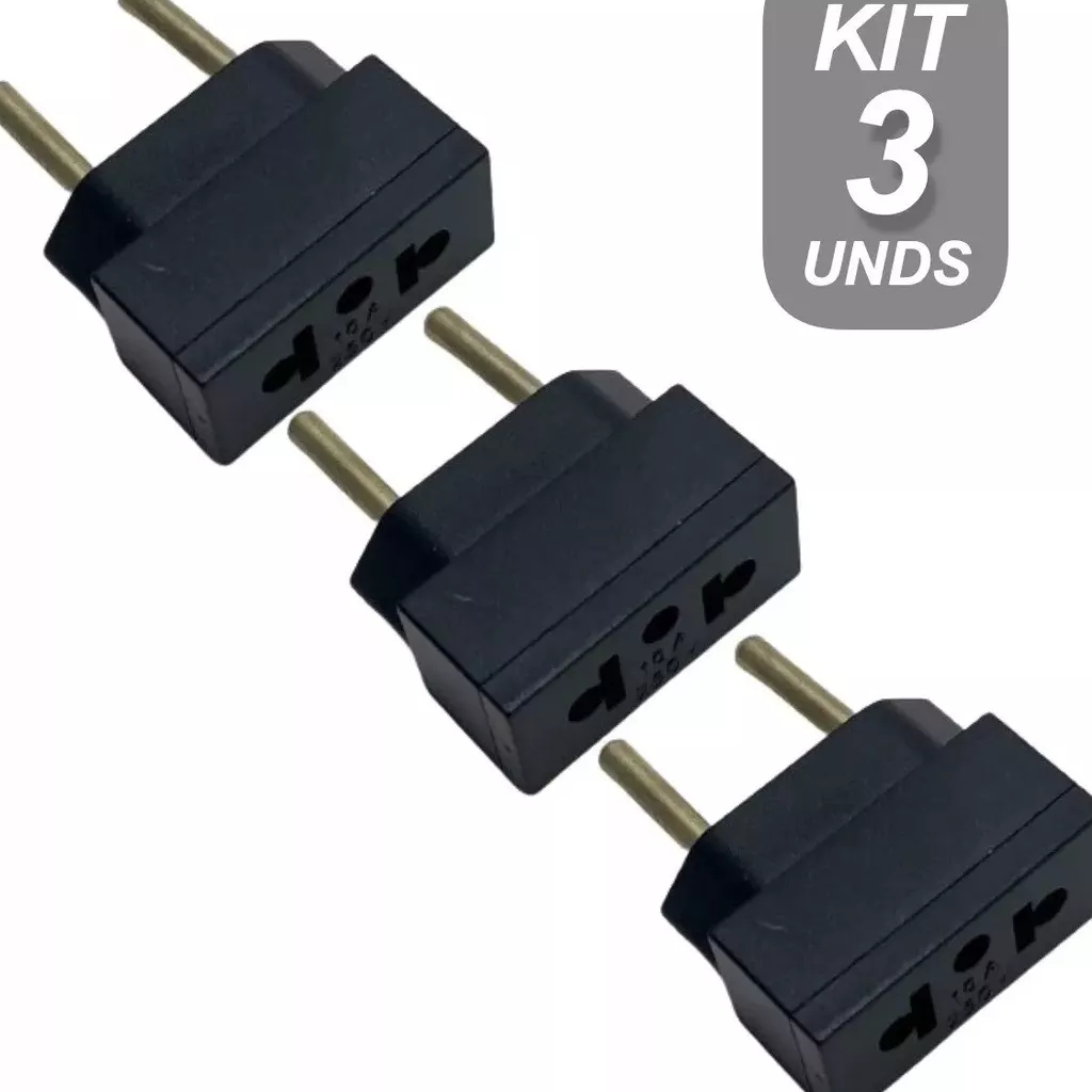 Kit 3 Adaptador De Tomada Americano Pino Bipolar Universal 250v 10 e 20 Amperes