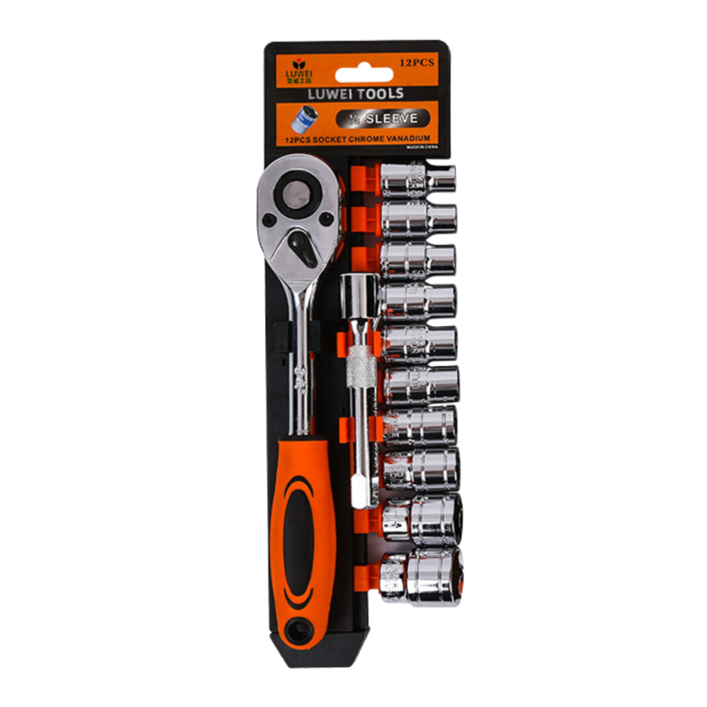 Jogo De Soquete Sextavado 10-22MM Com Chave Catraca Reversivel 1/2 Polegadas Extensão 12 Peças CRV