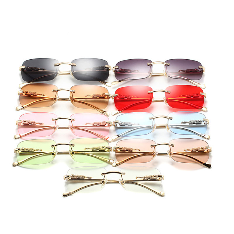 Novos óculos de sol quadrados sem moldura para decoração de chita Óculos de sol quadrados coloridos Homens Mulheres Retro Leopard Head Metal Óculos de sol Cross-Border Glasses