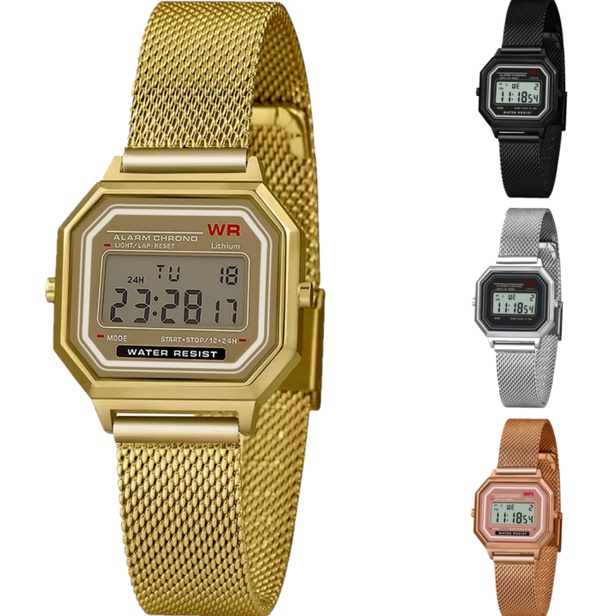 Relógio De Pulso Led Digital Malha Milanese Modelo Retrô Vintage Barato Não Prova D'àgua Unissex Masculino e Feminino