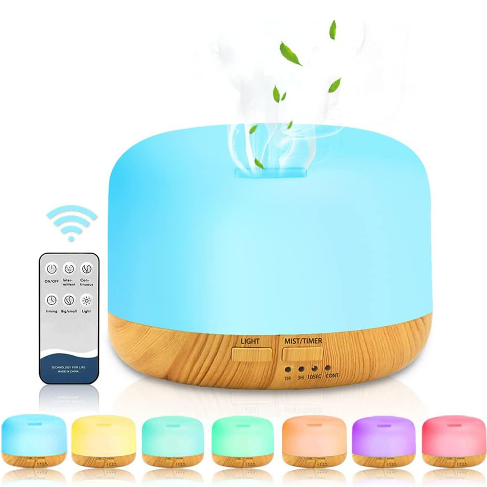 Difusor De Aromas Eletrico Aromatizador Air 500ml Essencial Oleo 7 Cores LED Com Controle