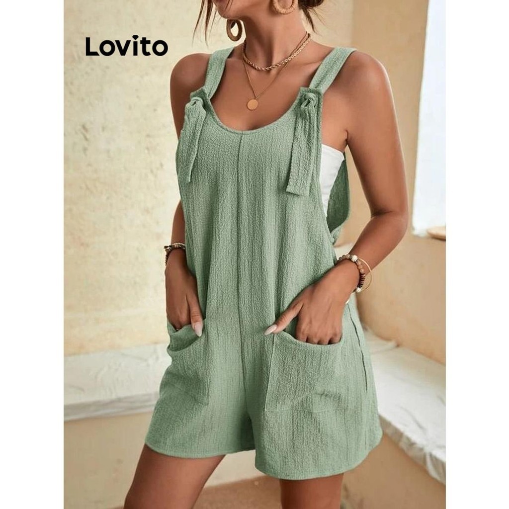 Lovito Macacão Casual Liso Com Bolso Com Cadarço Para Mulheres LNL43077
