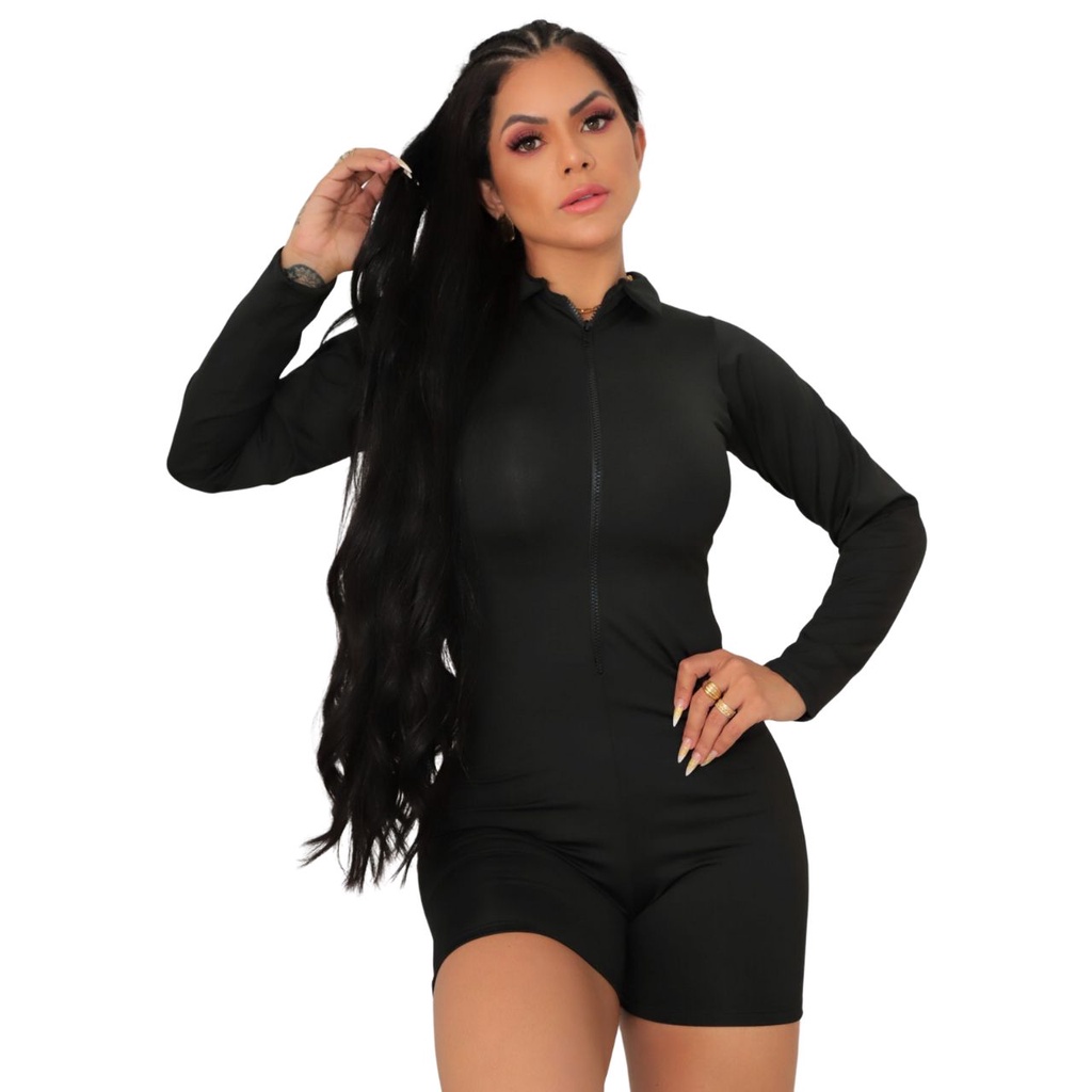 Macacão gringo short liso feminino Macaquinho Gringo / Macacão de Shorts Gringa / Zíper / Academia Fitness lançamento academia balada macaquinho macacao manga longa fitness gringa modinha .