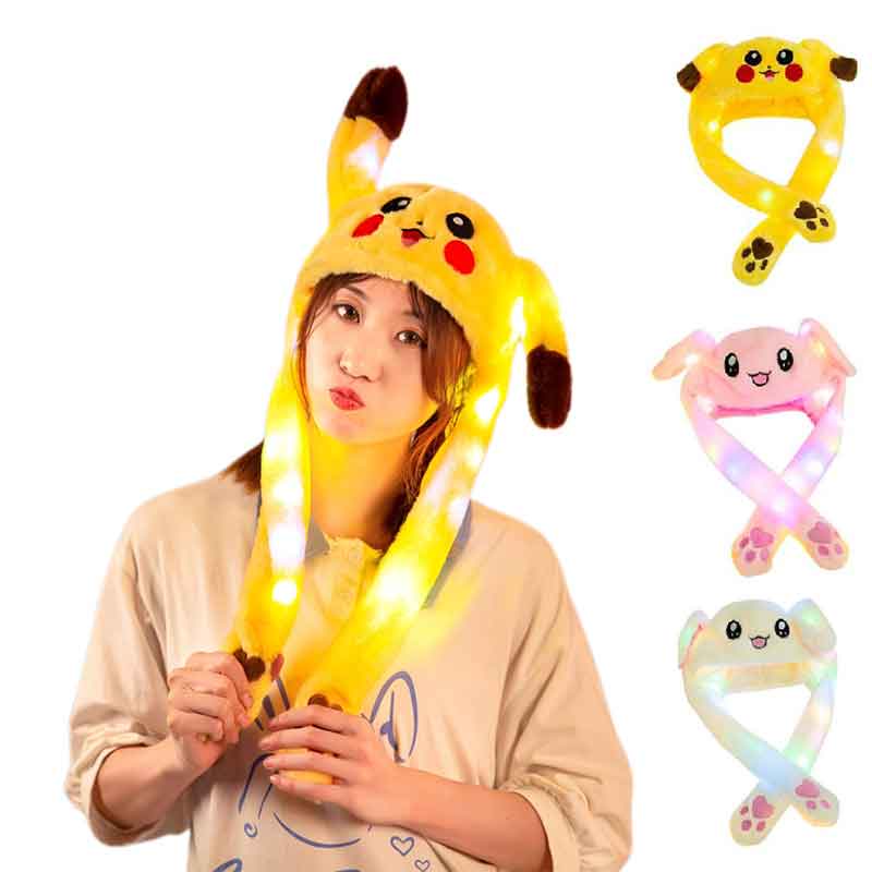 Chapéu Engraçado Bebê Crianças Iluminação Orelhas De Coelho Bonito Pelúcia Pode Mover Cap Brilhar Inverno Quente Do Partido