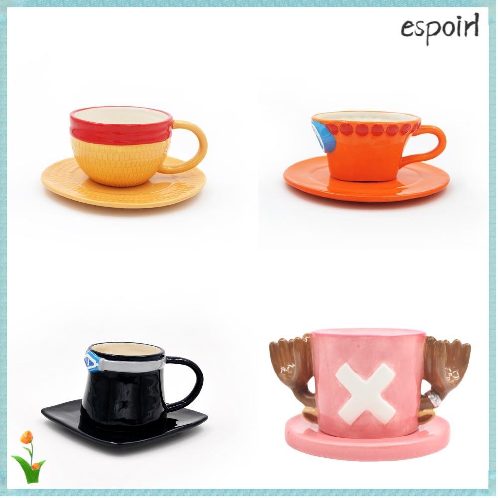 Caneca De Uma Peça ESPOIR Anime , Xícara De Café De Cerâmica Luffy Em Formato De Chapéu , Desenho Animado Sabo Com Pires