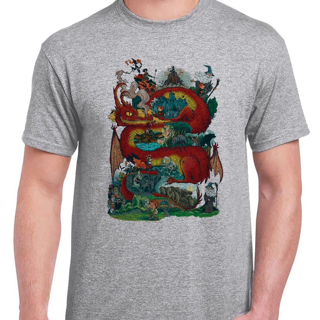 Camiseta Camisa Senhor Dos Anéis Smaug Hobbit Anéis De Poder Desolação Do Dragão Gandalf Bilbo Tolkien Unissex