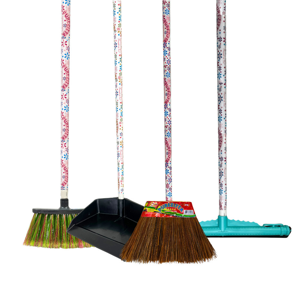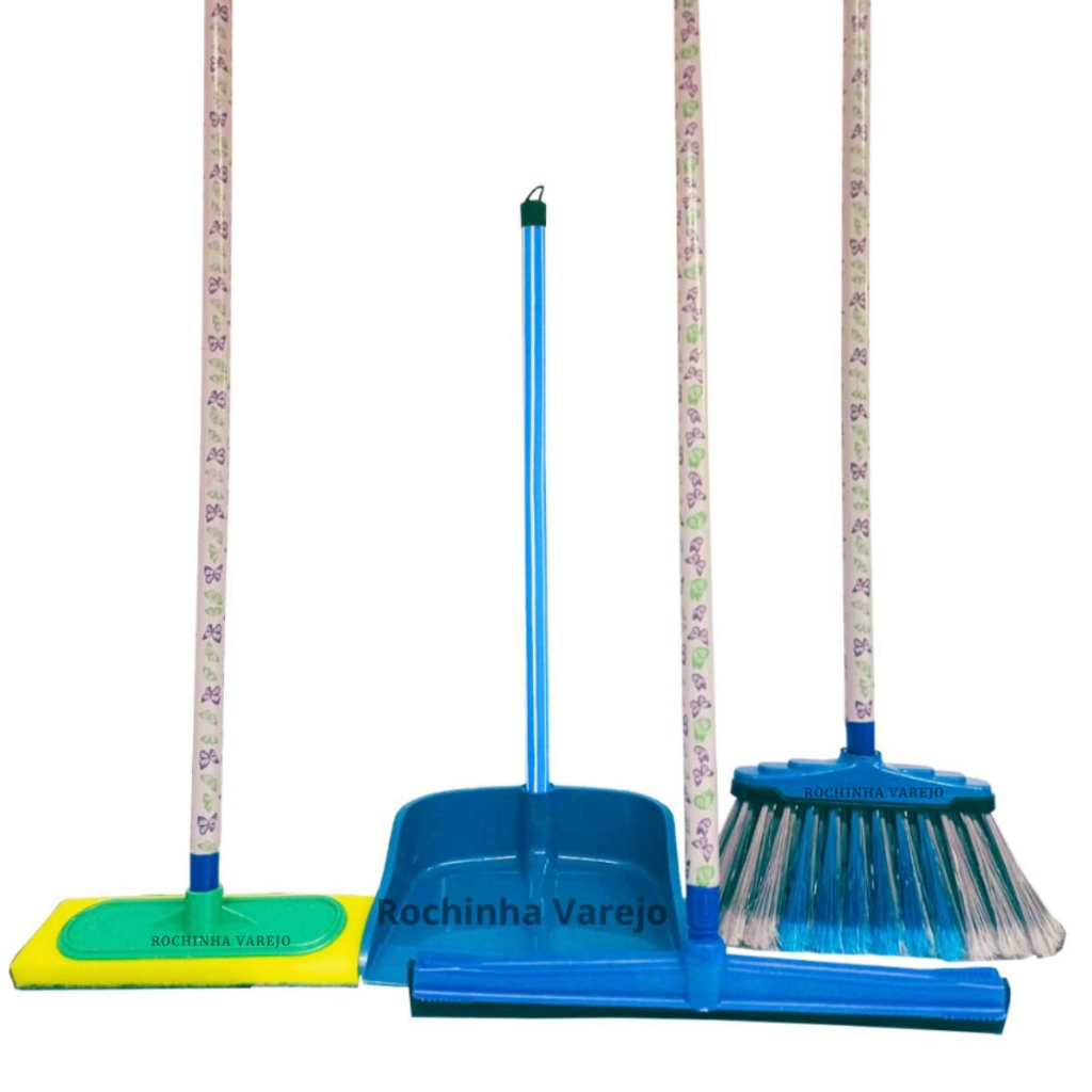 Kit 1 Vassoura (Com cabo), 1 Rodo (Com Cabo), 1 Lava (limpa) Azulejo (Com Cabo) e 1 pá de lixo (Com Cabo) - Rochinha Varejo