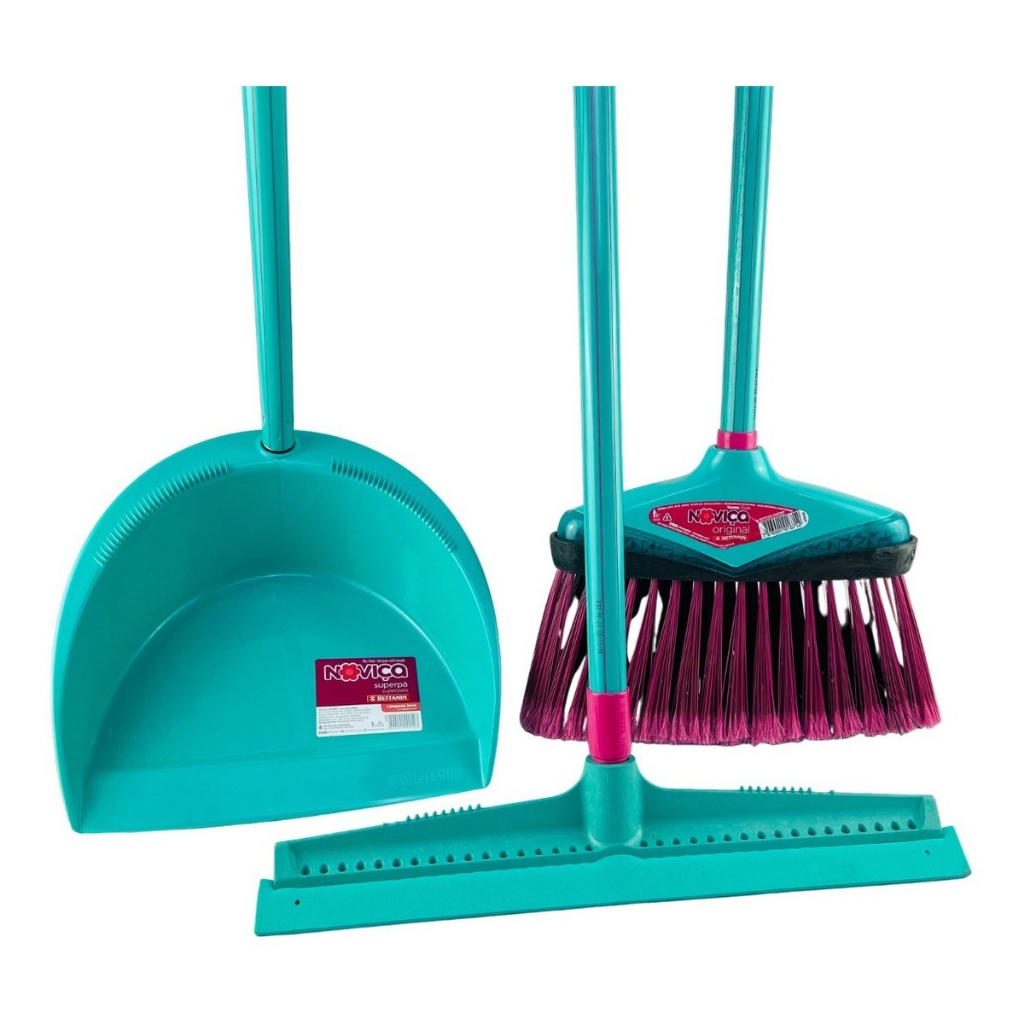 Conjunto Rodo 40cm + Vasoura E Pá Kit Com Cabo Noviça