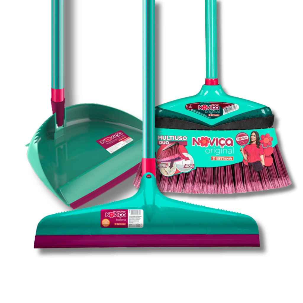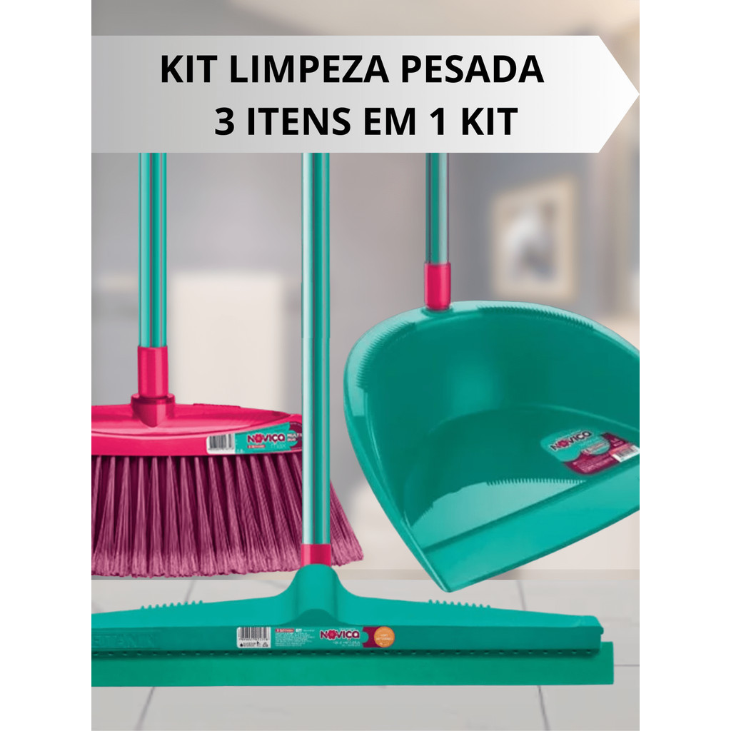 Kit Limpeza de Vassoura Rodo 40 cm Pá Fixa com Cabo Noviça