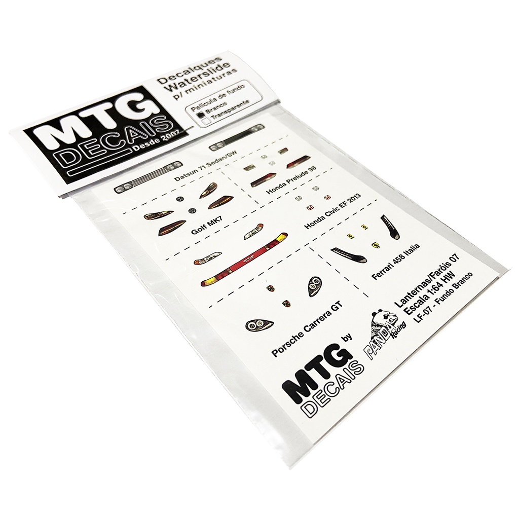 Decalque MTG Decais LF-07 Lanternas e Faróis Escala 1:64 Hot Wheels vários modelos