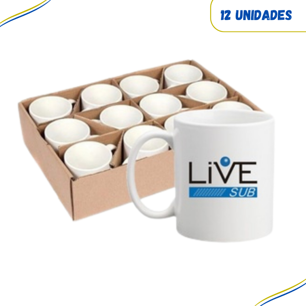Caneca Branca Resinada 325ml Qualidade AAA LIVE SUB - 12 unidades
